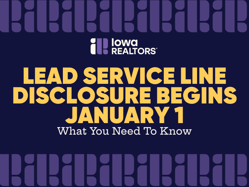 During the 2025 legislative session, Iowa REALTORS® worked closely with Des Moines Water Works and other utilities to legislation implementing a new Environmental Protection Agency rule requiring the disclosure and replacement of lead service lines over the next decade.
